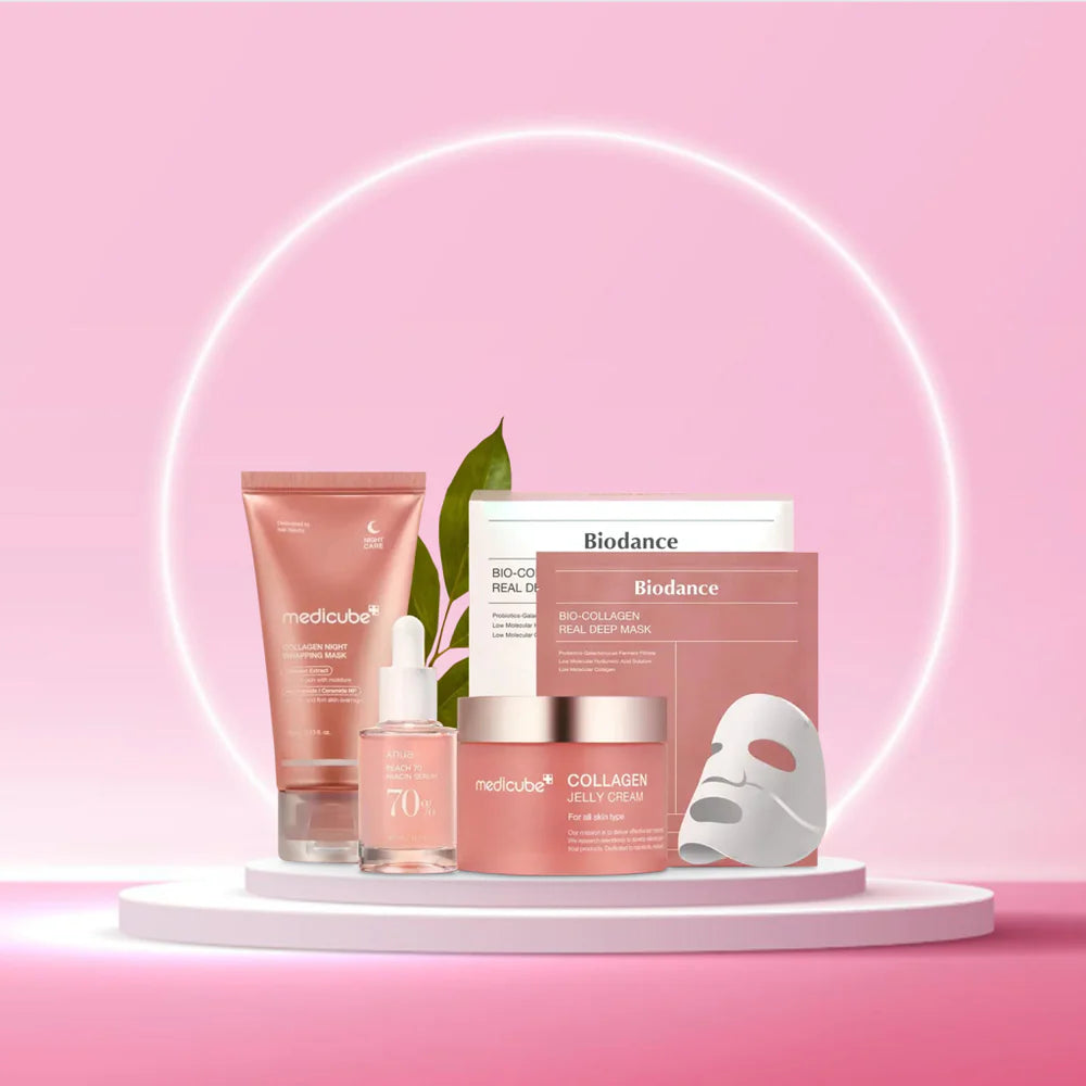 Ce pack associe quatre soins hautement performants pour redonner à la peau élasticité, éclat et nutrition. Entre technologie au collagène, vitamines issues de la pêche et soins raffermissants, cette routine est parfaite pour les peaux ternes, relâchées ou en manque d’hydratation.