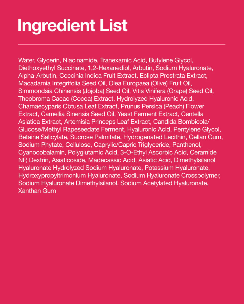La niacinamide resserre les pores, régule le sébum et renforce la barrière cutanée, tandis que le TXA inhibe la formation excessive de mélanine, rendant ce sérum idéal pour un teint plus uniforme, lumineux et éclatant. Sa texture légère convient à tous les types de peau, même les plus sensibles.